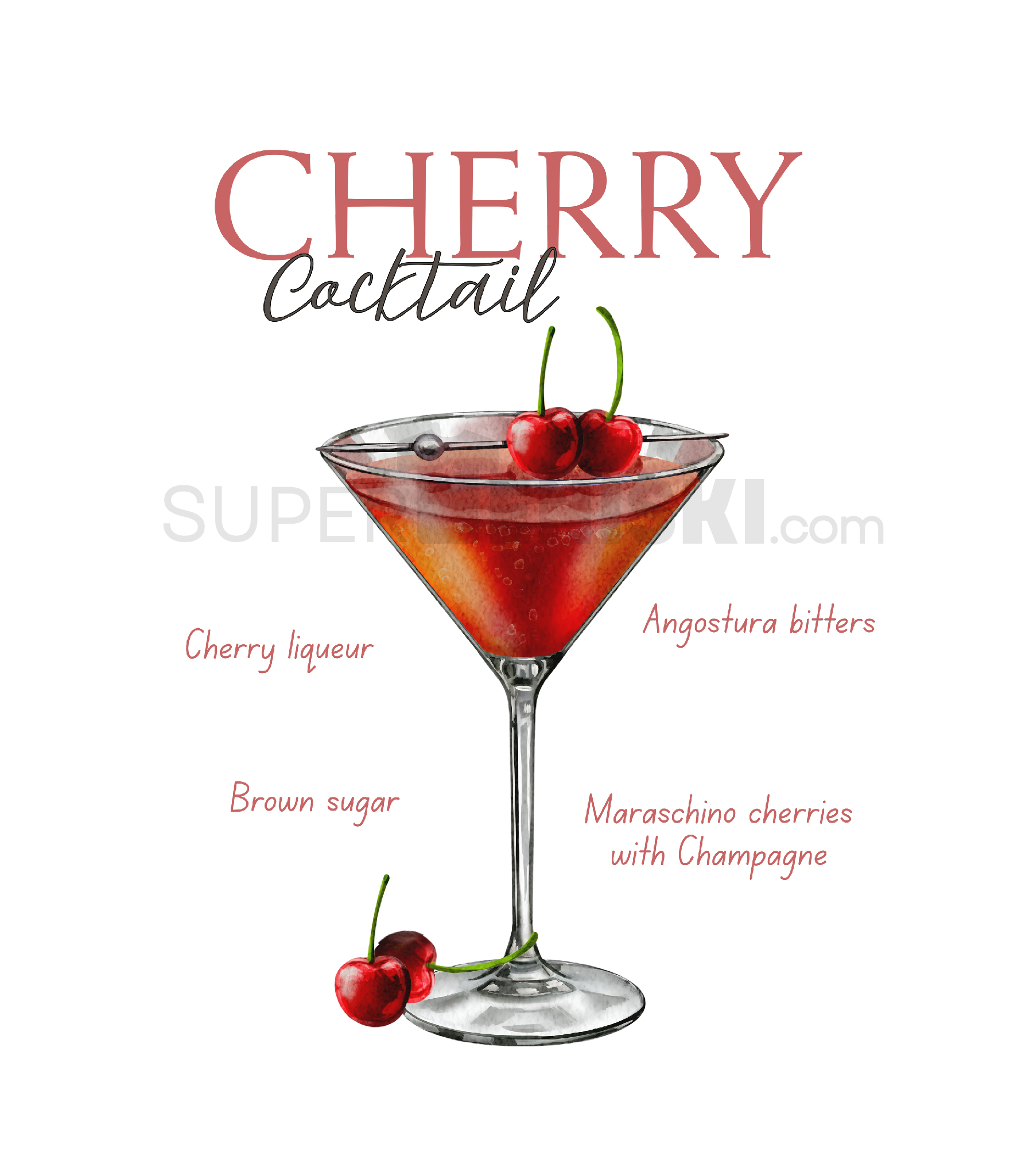 Стилна тениска с модерен дизайн на Коктейл с черешки.